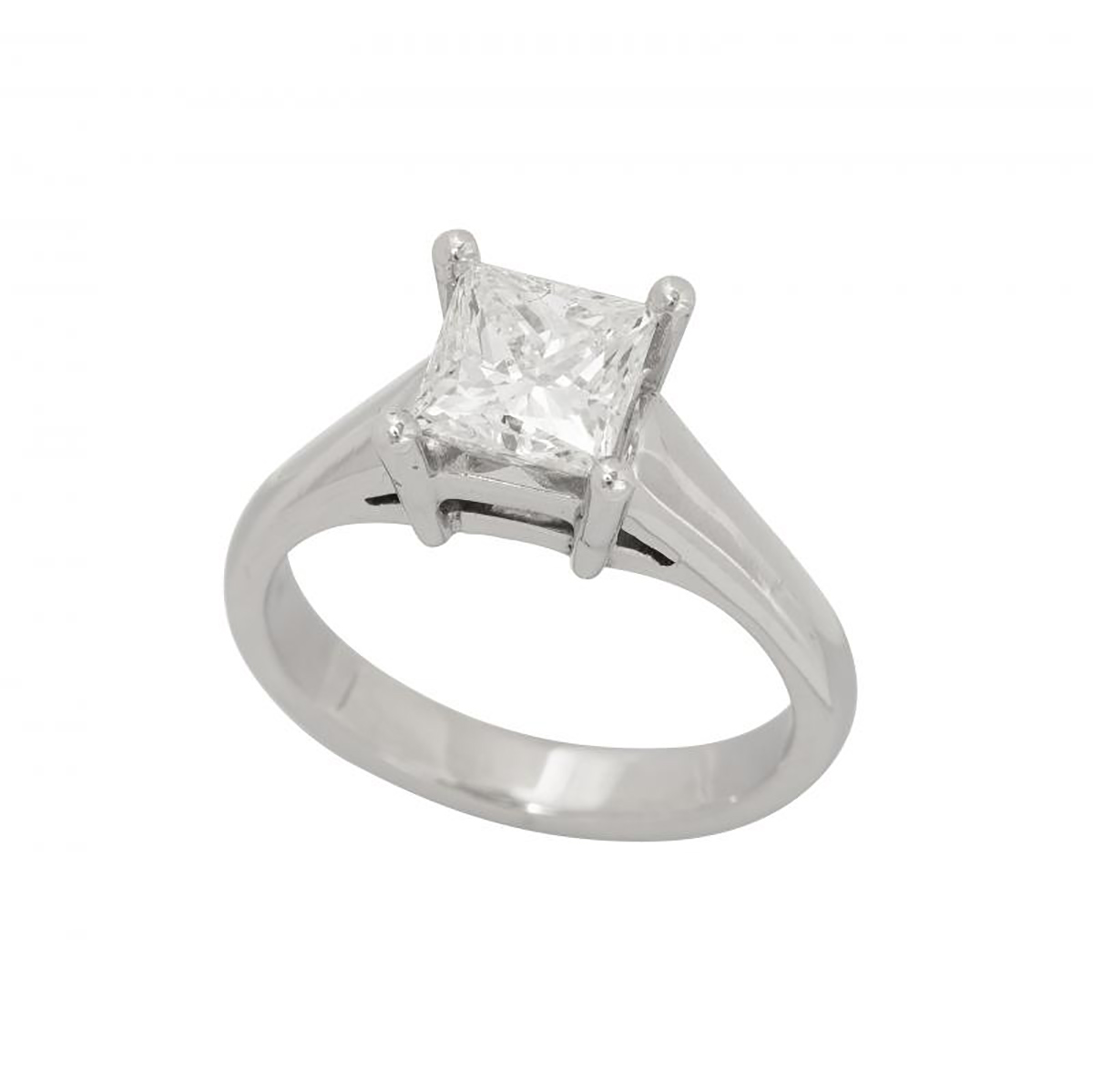 CERTIFICADO GIA. Anel de platina com 1,14ct de diamante lapidação princess G-VS2 e 6,5g. Medida 11.