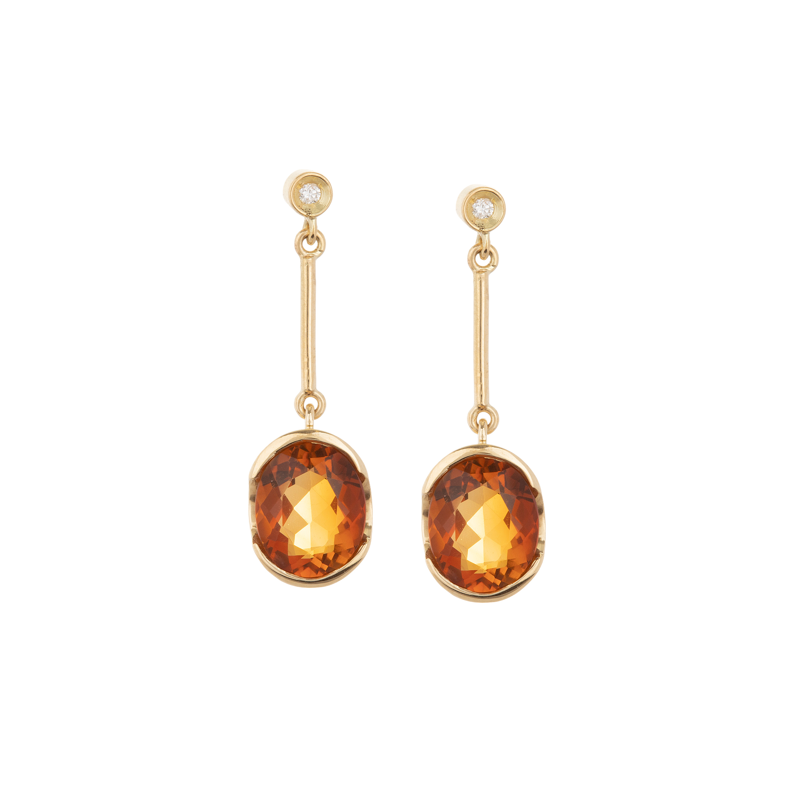 Brinco de ouro amarelo com citrinos, 0,03ct e brilhantes e 6,6g. Medida 3cm.