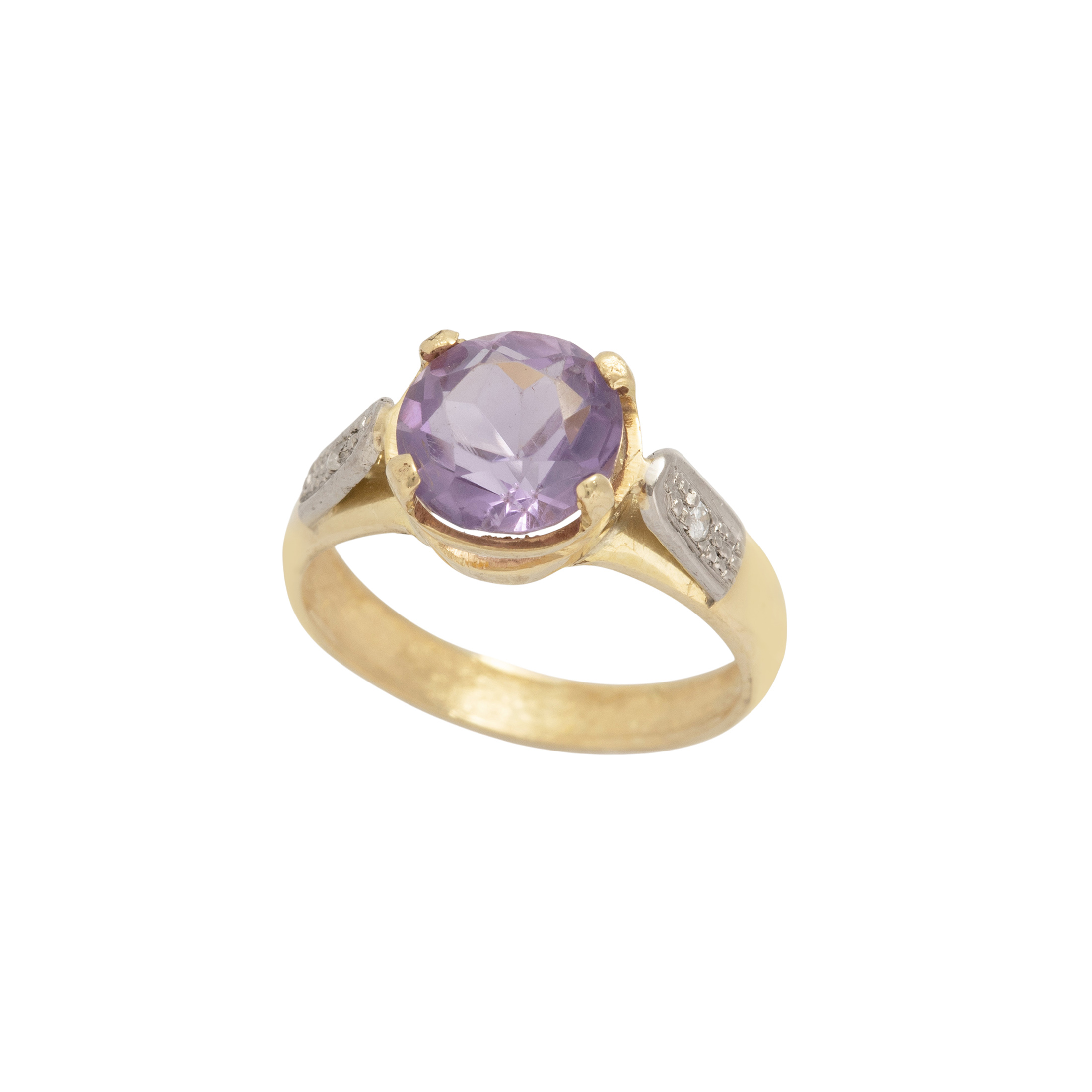 Anel de ouro amarelo com 1,94ct de ametista e 0,04ct de brilhantes. Medida 15.