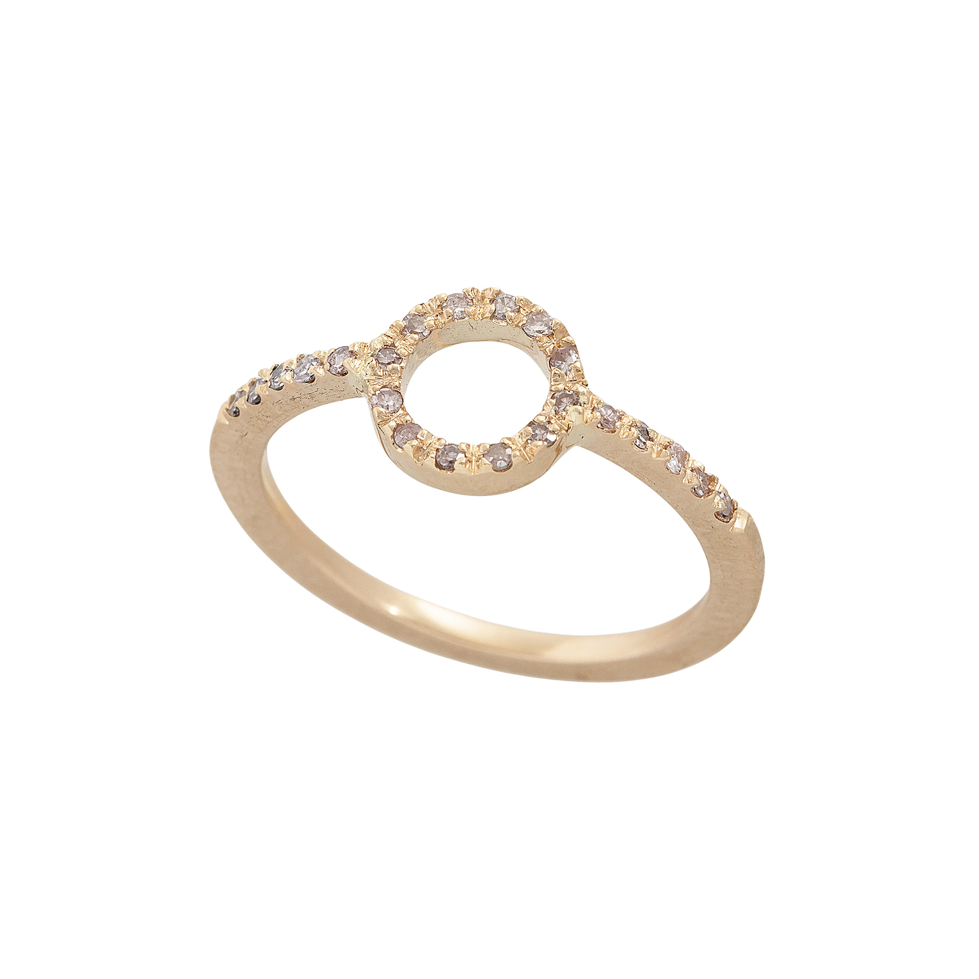 Anel de ouro amarelo com 0,10ct de brilhantes. Medida 16.