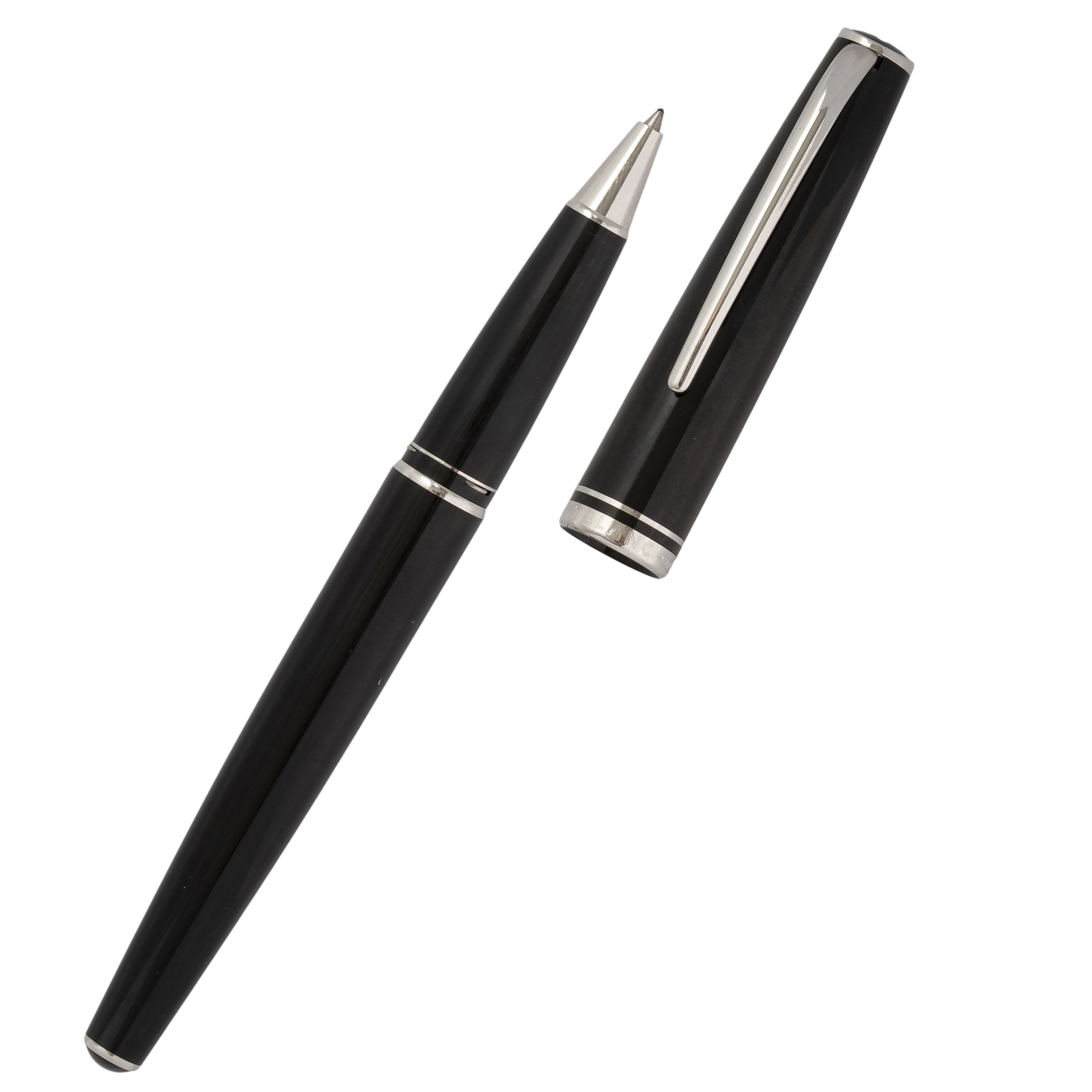 MONTBLANC. Caneta Generation rollerball de resina preciosa com detalhes revestidos a platina. Com estojo e certificado originais. Medida 14cm.